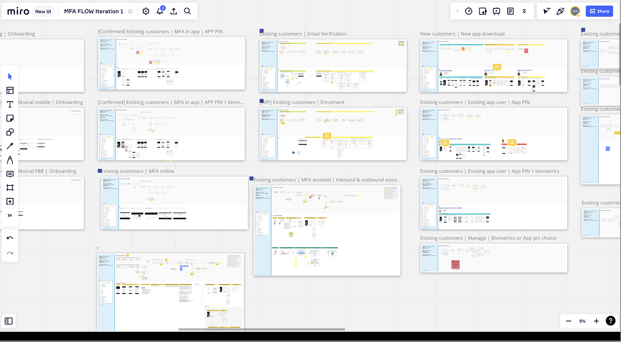 I ran 10+ co-design workshops to map out journeys for every entry point of MFA and the wireframes and/or service blueprints required. This started as basic workflow decision trees and then into wireflows & journey maps across the various channels. We mapped out all micro-interactions, edge-cases around those who aren’t enrolled, and maintained cross-platform consistency.