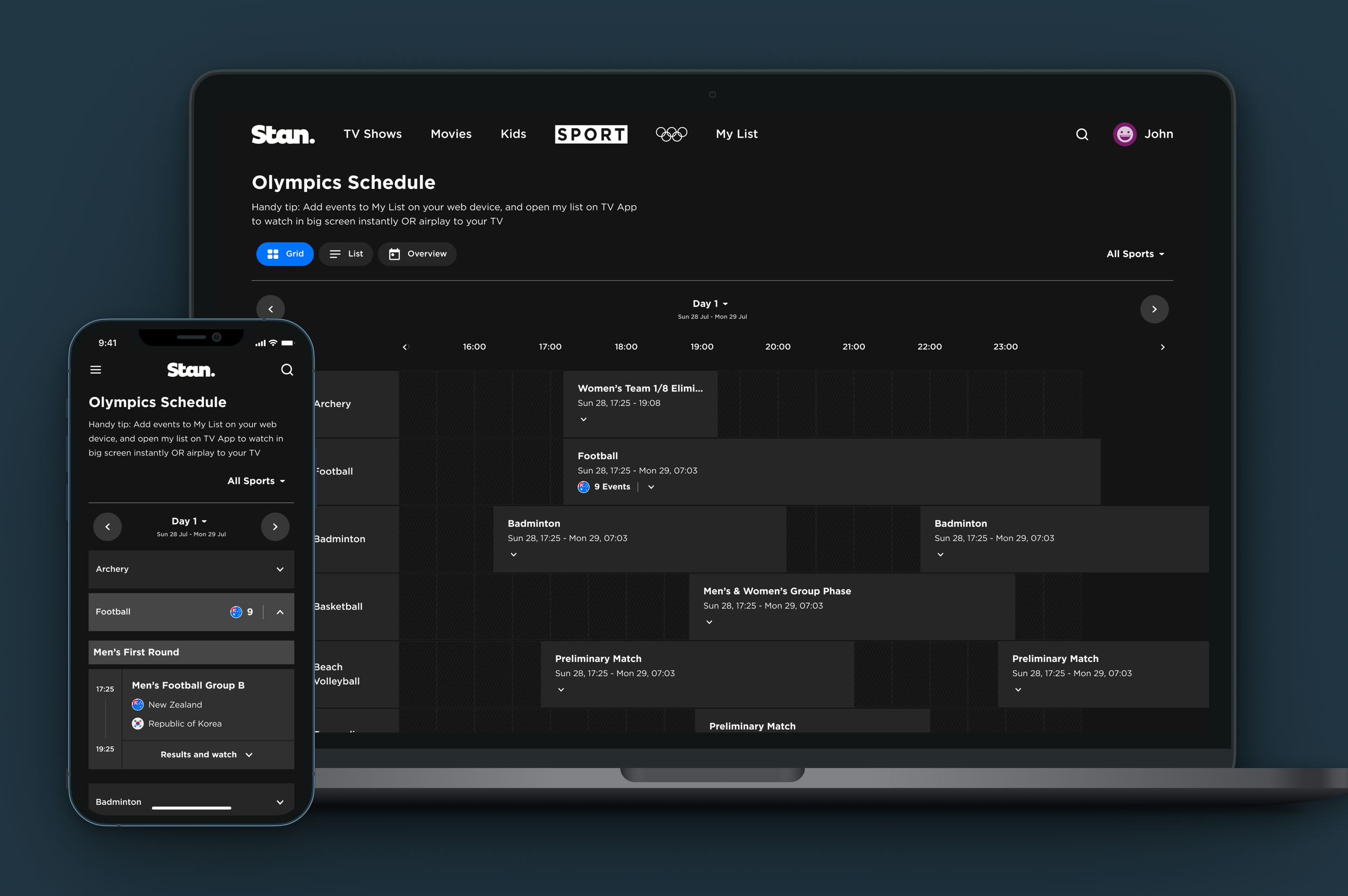 Despite its density, users found the grid exciting and reassuring it conveyed the scale of the Olympics and reinforced that Stan offered comprehensive coverage.