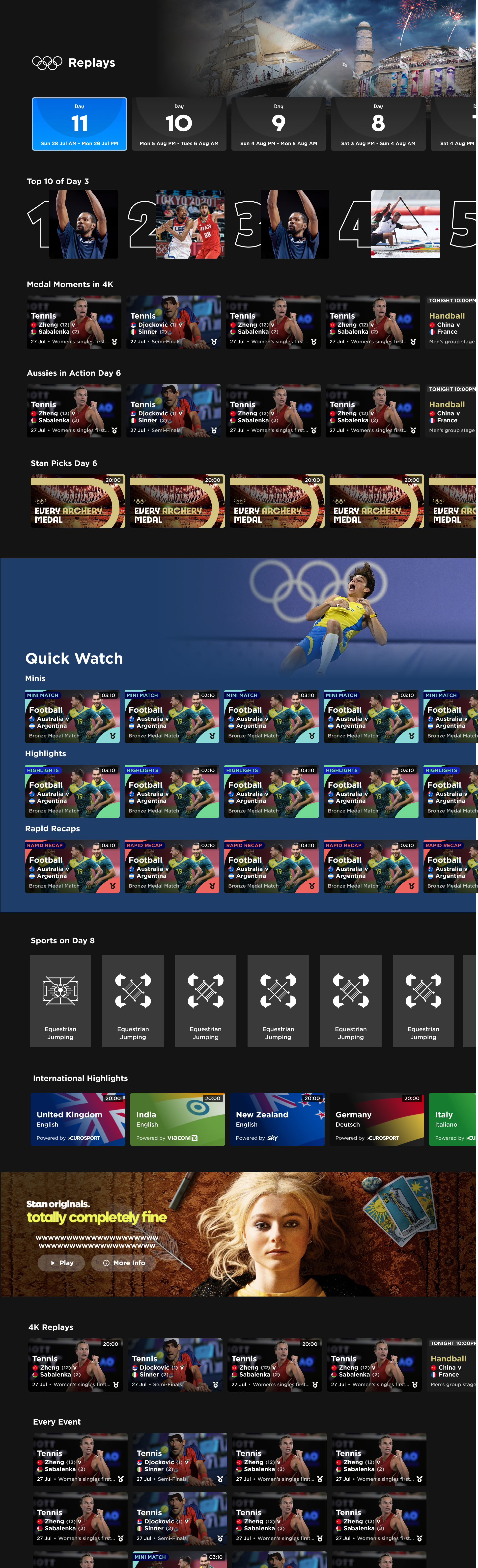 As part of a 4-person design team, I helped define and deliver the Stan Olympics & Paralympics experience. We created a blue-sky, 10-year vision, and took it to a shipped MVP on CTV, Web and Mobile platforms in under a year.